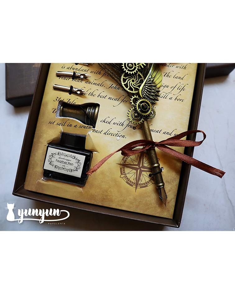 10 piezas = 1 pluma + 1 sello de lacre + 1 barra de cera + 5 plumines + 1 soporte para pluma + 1 frasco de tinta negra