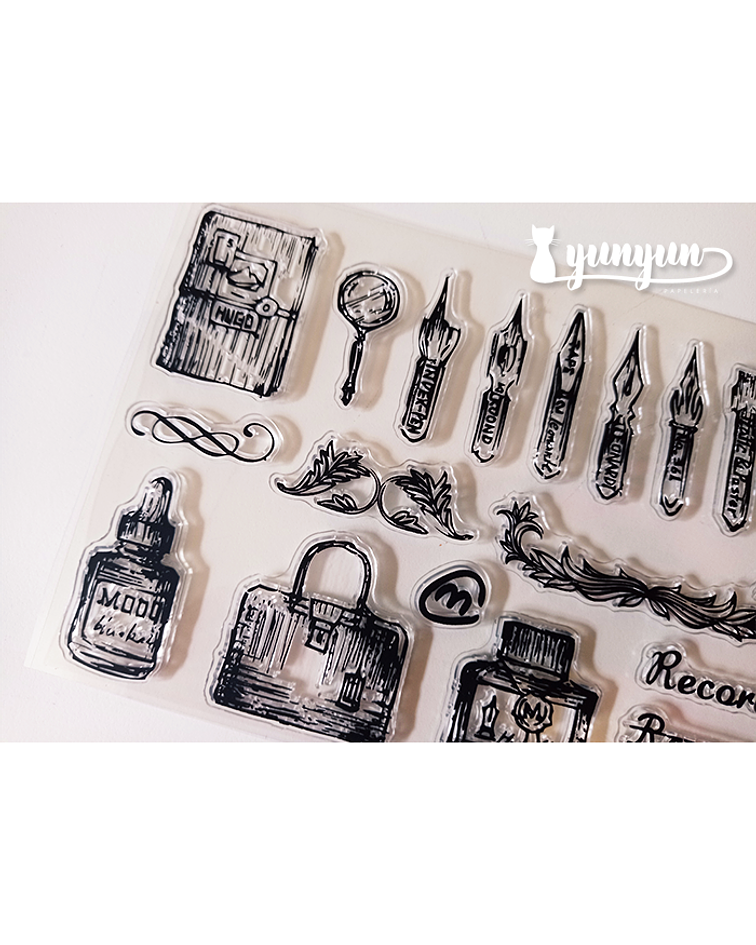 Sellos Silicona Escritura Vintage - 19 pzas